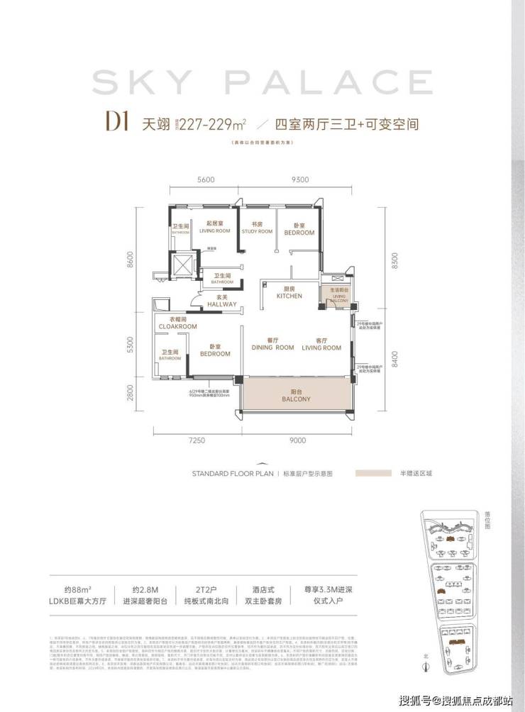 D1天翊(227-229㎡四房三卫+可变空间)