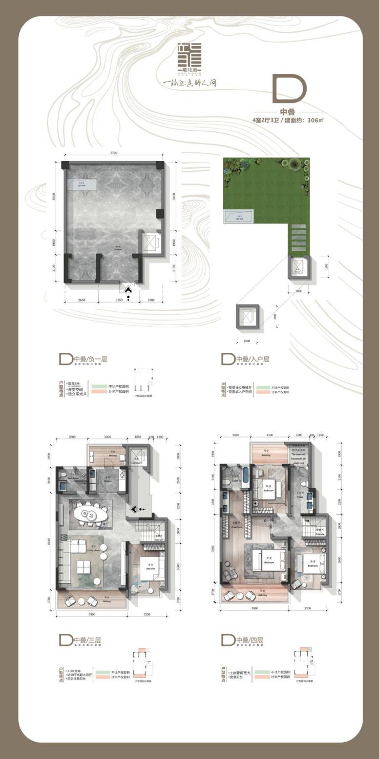 主力产品涵盖:• 建筑面积410-472㎡滨水双拼别墅• 建筑面积208-327㎡花园叠拼别墅每套住宅均经过精心设计,实现居住舒适度与自然景观的完美融合。