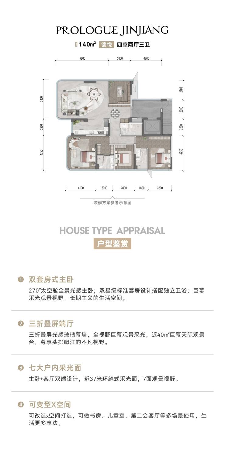 产品面积:125-173㎡ 户户瞰江濠宅;179-235㎡ 定制天际顶跃