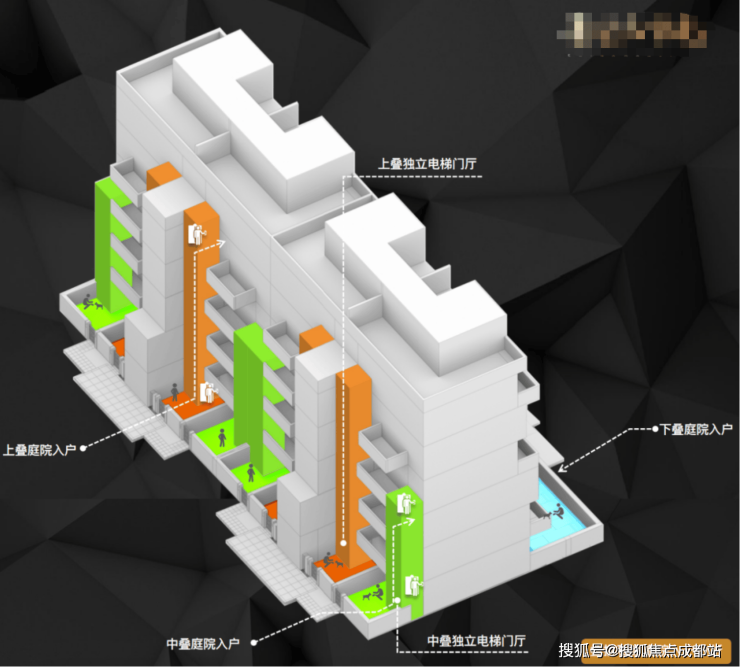 隐私性:建筑设计单位为汇张思,开创了三独立体系。使得上、中、下三叠均有各自的独立地面花园,独立地下空间,独立归家动线,这套设计的精髓是私密性。无论地面还是地下,每一户业主都有独立、不交集的归家入户方式,业内称为“类独栋化叠拼”。