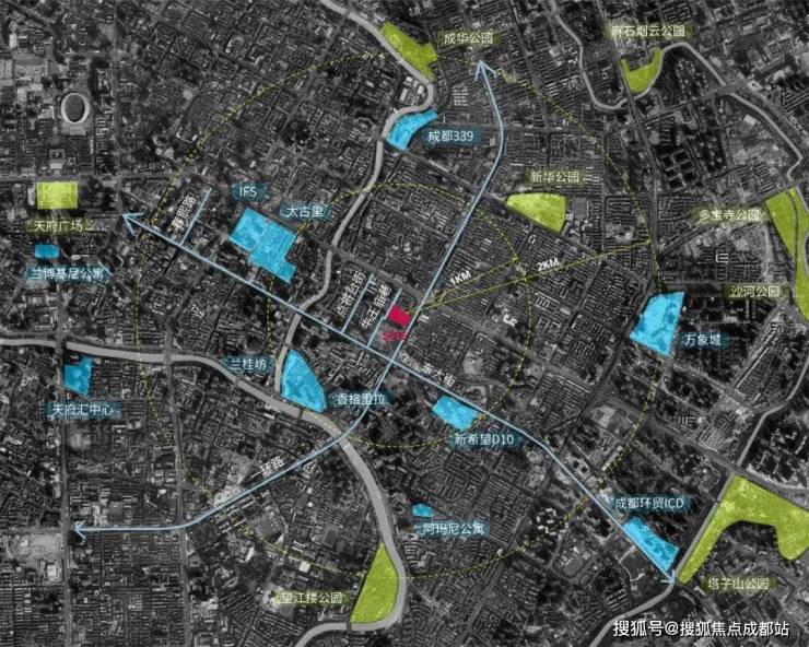 核心商圈环绕:位于春熙路-太古里-IFS 商圈附近,直线距离仅约800米,是成都最繁华的商贸中心之一,全球LV及 Gucci的旗舰店便诞生于此,也是全球销量第一的门店。