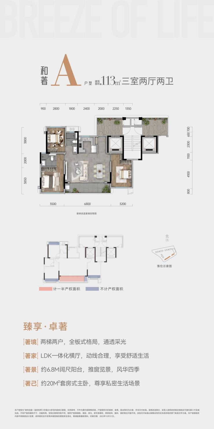 户型:113㎡套三双卫、132㎡套四双卫