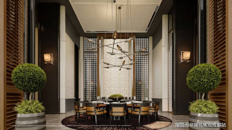 以迈阿密瑞吉会所和苏宁钟山高尔夫会所为空间蓝本,以蜀锦、茶文化、皮影戏等巴蜀在地文化为艺术源泉,打造出成都东意西境美学的高端会所经典范本。