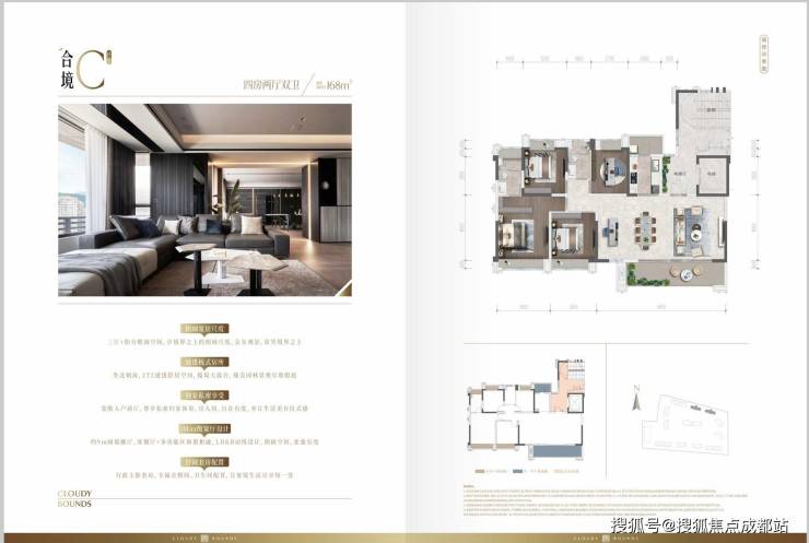 168㎡户型 9.45米iMax级宽体设计 南北通透 揽境露台 四房、幻变五房