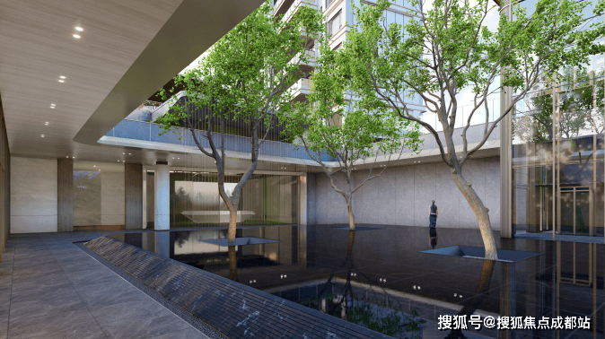 下沉生活会所打造灵动静面水景,景观秘境里,千年东方造园哲思化作“守望乌桕"、"一池三山"、"四水归堂"的雅集景象。视觉大开大合同时又富有变化,结合高差营造的水帘瀑布落入水池中,飞瀑叠泉,归家即度假,同时会所具备健身、会客、品茗、儿童游乐等功能,为峯层人士定制的高阶生活方式。