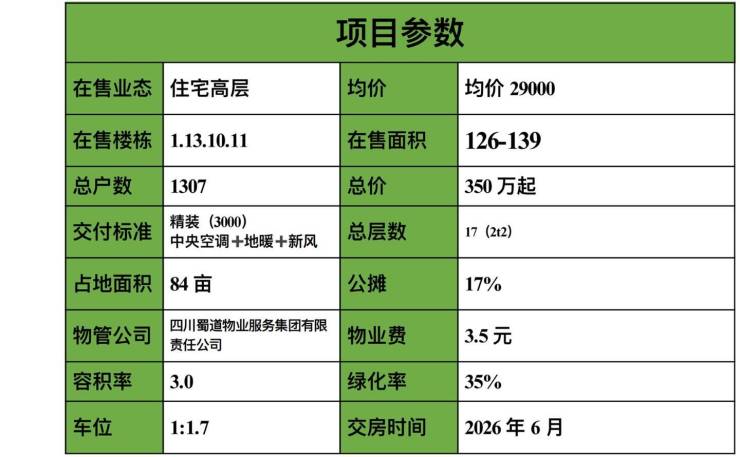 公园:红仓·完美文创公园、二仙桥公园、东郊记忆、成都自然博物馆等城市级配套落定;机车公园、城东体育公园等主题公园