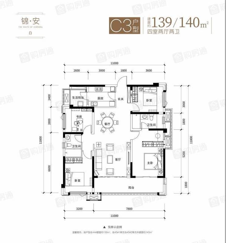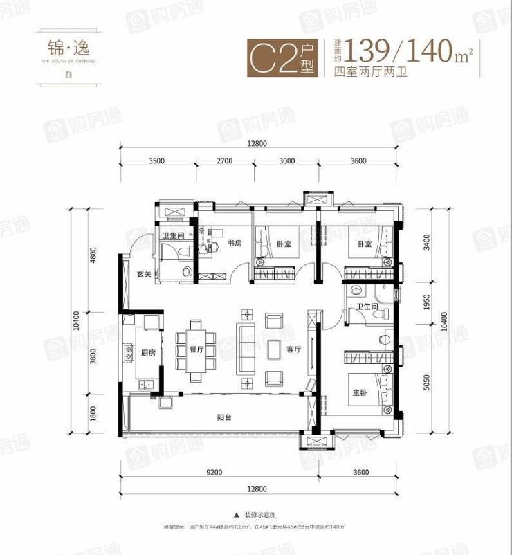 产品面积:109㎡套3双卫-139㎡套4双卫