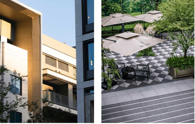 尊享归家礼遇: 拓宽临河界面,打造恢弘门庭与星空车行坡道;升级叠拼停车入户光厅,营造尊贵礼序。