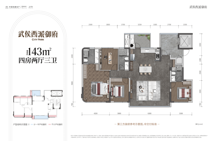 交付标准:精装(128/143m²交付标准3280元;188m²交付标准4999元)