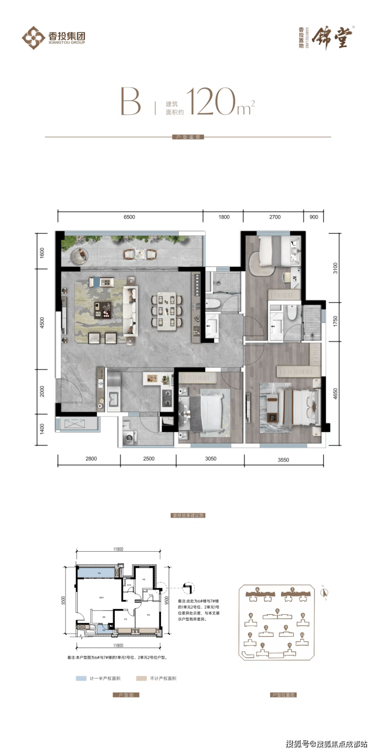 瞰景高层(6#、7#清水交付):建面约97-120㎡(97㎡享13㎡赠送,120㎡享14㎡赠送)
