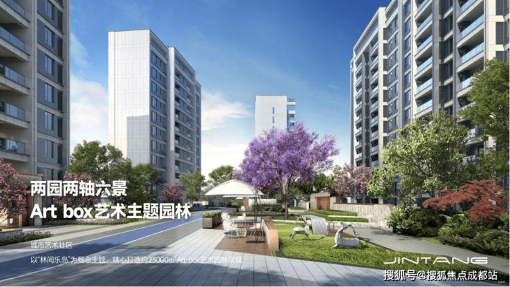 Art box艺术主题园林,以"林间乐岛"为设计理念,匠心打造23000㎡景观空间,呈现两园两轴六景的立体景观体系