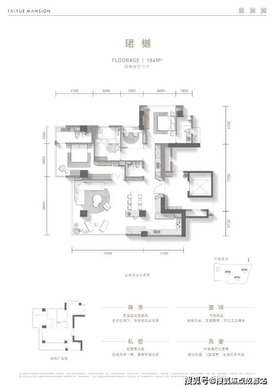 配套:含恒温泳池、健身房、瑜伽室,定位城市塔尖人群。