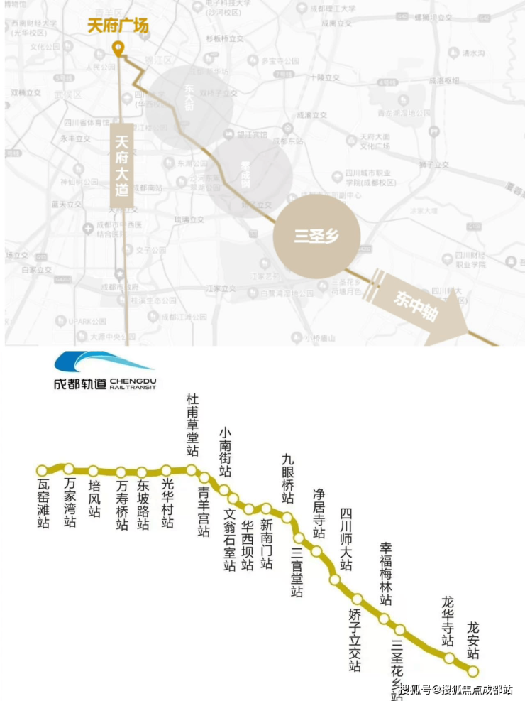 项目坐拥"三横三纵"城市主干道体系,快速连接中心城区、金融城与东大街核心区。三大TOD枢纽(三圣乡TOD-林家坝TOD-川师TOD)环伺,汇聚地铁2/7/9/13/20号线五条轨道交通。双机场辐射优势显著:至双流国际机场约20公里,至天府国际机场约50公里。