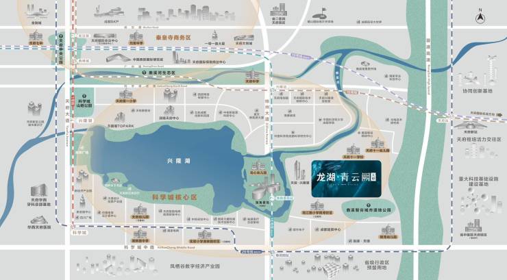 坐拥兴隆湖生态区(约6500亩)与鹿溪河生态区(约4500亩)双生态体系,完美诠释"公园城市"发展理念,打造"水清、岸绿、业兴、人和"的生态宜居典范。
