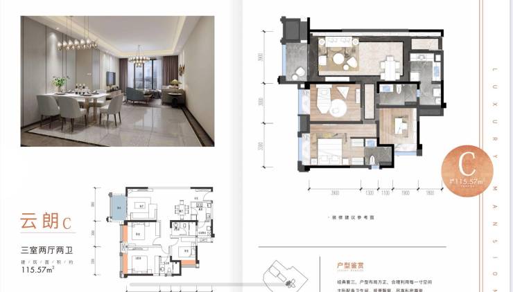 项目规划3栋高层住宅,总户数155席,采用2梯5户配置(首层架空设计)。主力在售建面约115-118㎡臻品户型,均价约20000元/㎡,总价区间211-249万元。项目占地12亩,容积率2.7,绿地率达34%,配备302个机动车位。物业由中国电建提供专业服务,收费标准2.78元/㎡/月,公摊比例控制在20%。