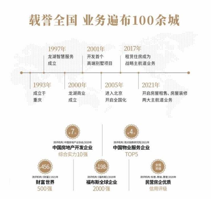 龙湖于1993年成立于重庆,中国地产综合实力排行TOP10,总部设立在北京朝阳区,业务涵盖地产开发、商业运营、智慧服务、冠寓、塘鹅租售、装修等