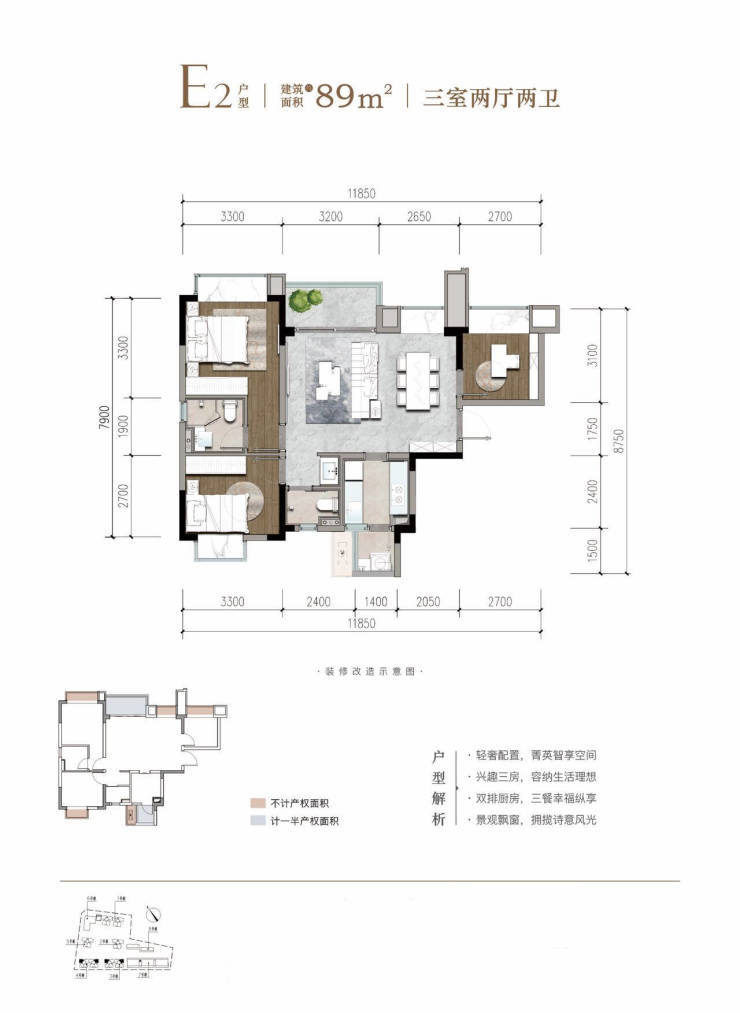 1、89平三室两厅两卫