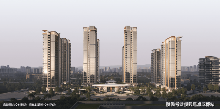 大门搭配的超尺度日照金山雕塑、与国家工艺美术大师亲研的和田碧玉门钹,更将尺度、文化与仪式的融合,与精神高度的锚定,使大门区域不再只是通往家的路径,更是金融城三期的精神堡垒、致敬成都文明的城市雕塑,让居住者每一次穿行,都感受到心理和视觉上的双重享受。