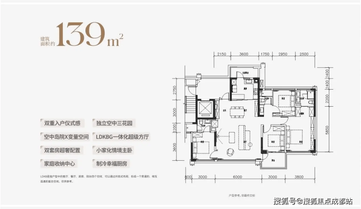 极致舒适:三卫设计,多人口家庭使用更便捷;约 9 米景观阳台,视野开阔,可俯瞰社区园林。