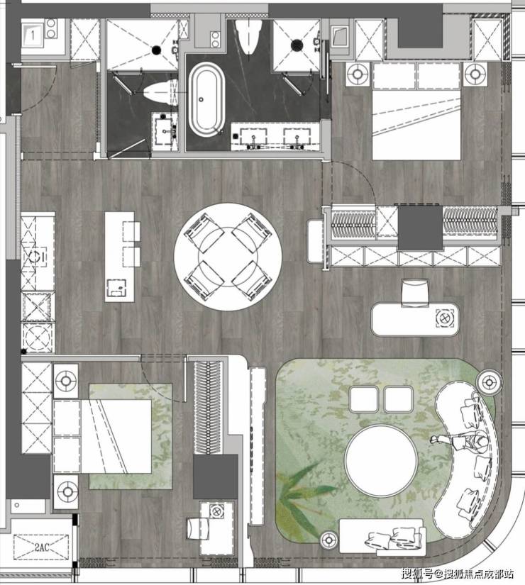 特点:建面85㎡实得148㎡,三房设计,以“竹文化”为主题,客餐厅开间达5米,中西双厨配置美诺厨电,主卧配备全景落地窗3910。