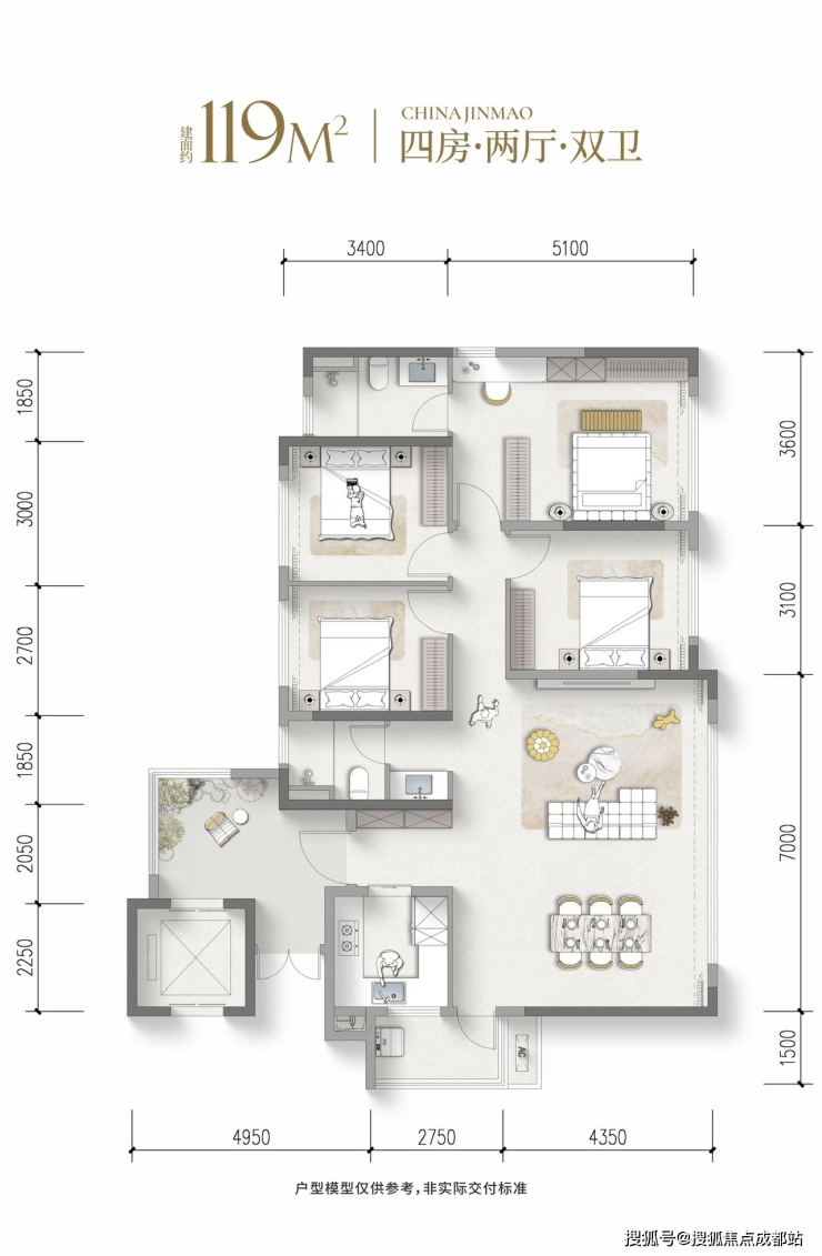 T2产品采用精装交付,延续金茂“鲸吞收纳”体系,针对不同空间进行精细化优化: