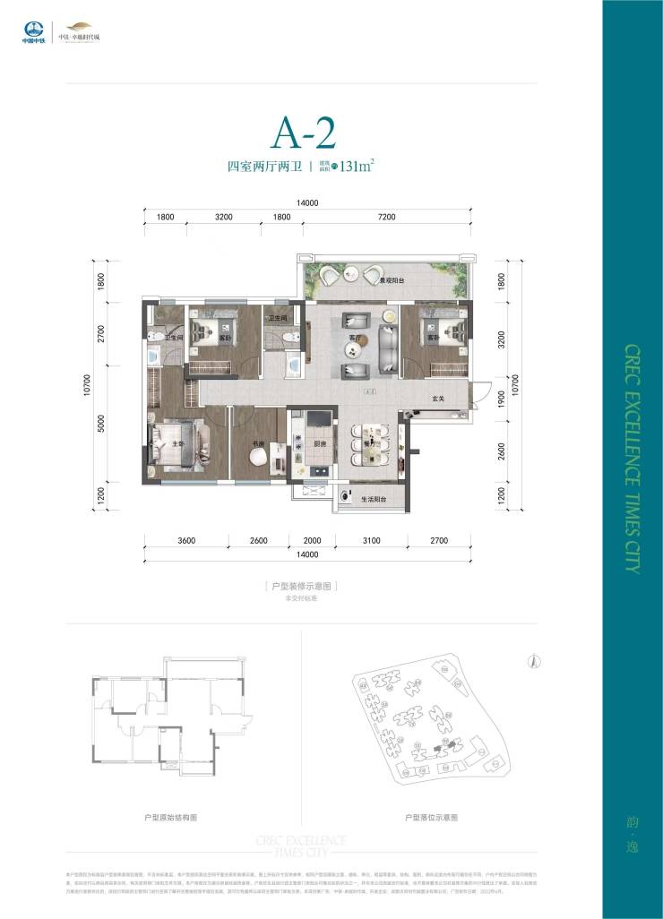 A2户型——建筑面积约130-131㎡四室两厅两卫