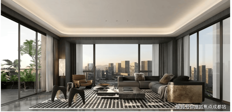建筑采用大玻璃幕墙与铝板相结合的设计,45°蝶形错位布局,奇偶层露台错位旋转,实现“零对视胁迫”,核心空间打造约316°临空采光面,全系采光周长≥50米,光通量提升40%+,真正做到“四面光权”;园林由蓝调国际操刀,以“鲲鹏展翅”为设计理念,打造约2万㎡大区景观与300米中央景观轴,斩获2026美国MUSE设计铂金奖,成为成都首个获此殊荣的新四代宅项目。目前主推190-326㎡第四代住宅产品,总价800万起,适配塔尖终极改善需求。