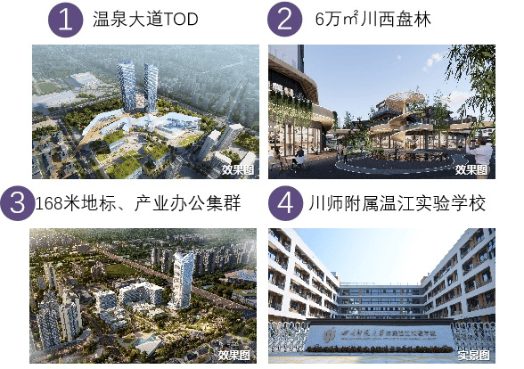 沿黄金主轴集聚城市顶级资源:西部最大TOD枢纽、旗舰级商业综合体、地铁网络核心站点、精英教育集群、高端产业园区等城市级配套星罗棋布,构筑不可复制的价值高地。