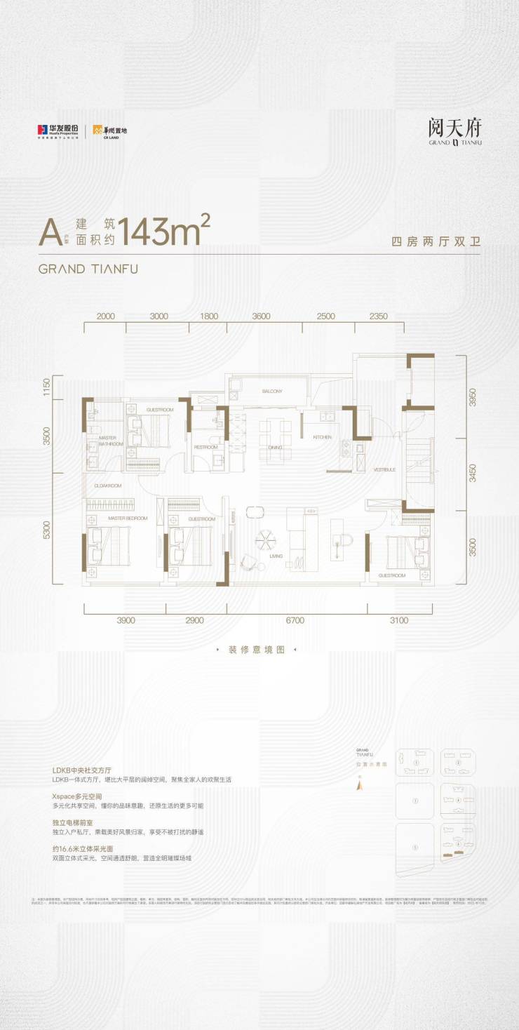 169㎡四居室:单价3.4-3.5万/㎡,总价570-600万