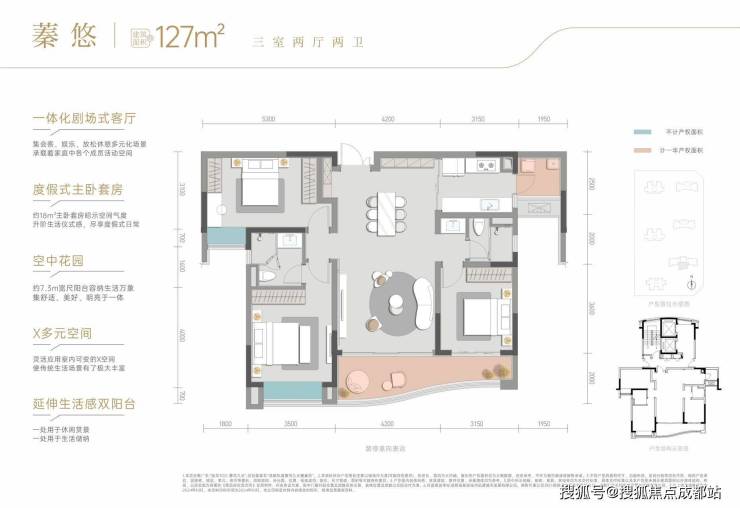 蓁悦组团原规划四款主力户型,现阶段持续推售的是建面约127㎡与146㎡两大标杆产品。