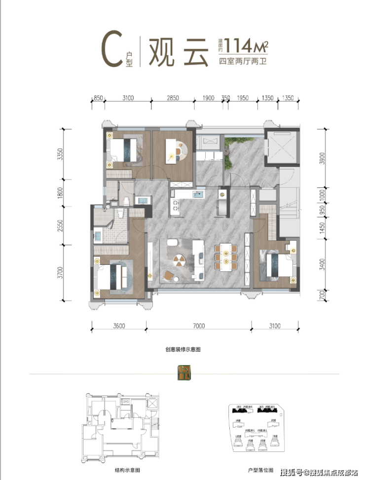 建面约114㎡ 新规四房|实际使用空间约128㎡