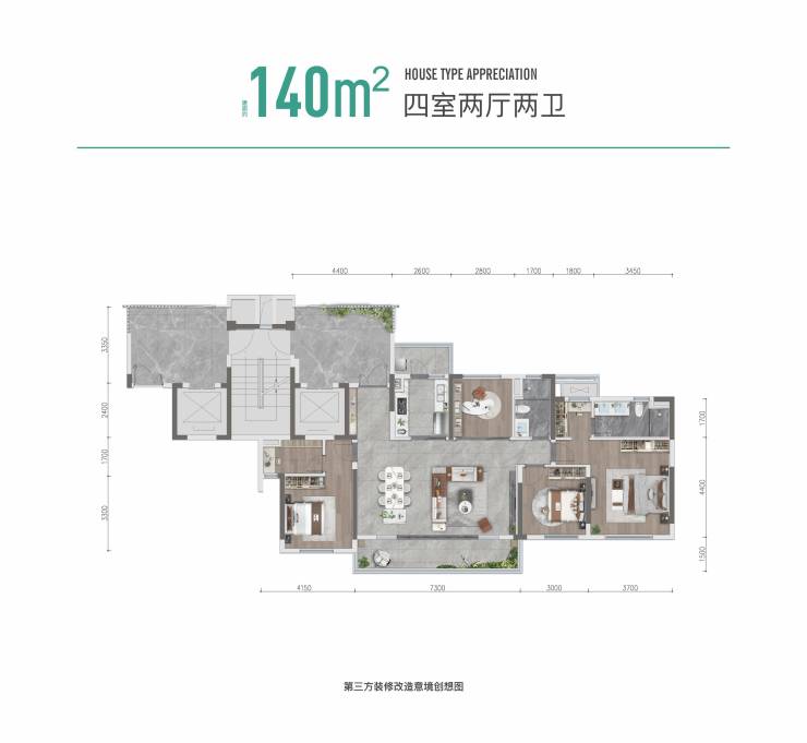 宽境奢阔四房,超宽楼间距中庭景观、双套房设计、总统主卧套房。