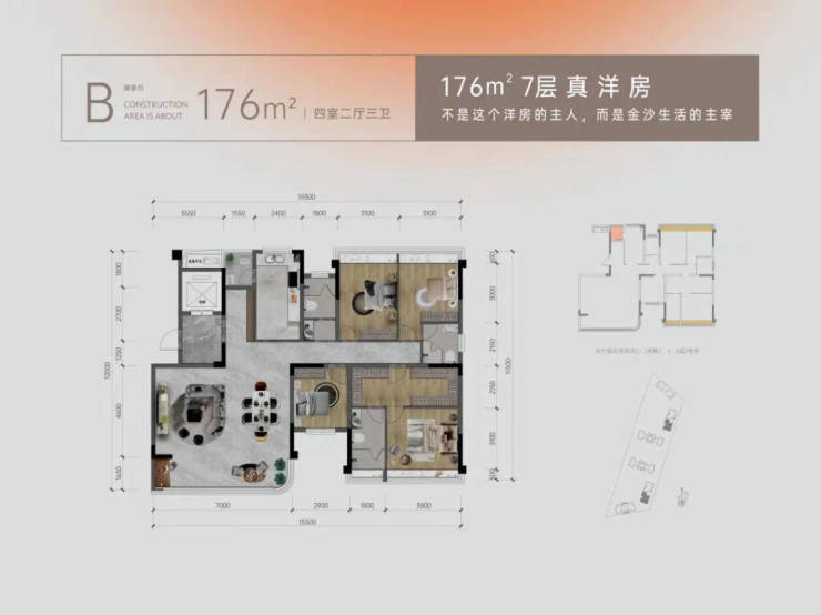 首推房源:149㎡四房(1号楼)、176㎡四房(2号楼)