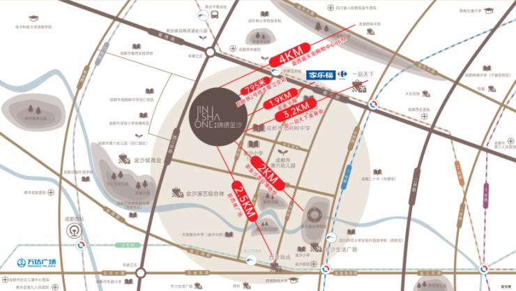 商业矩阵:1公里范围内覆盖金沙演艺综合体(2024年底运营)、龙湖西宸天街等七大商业体