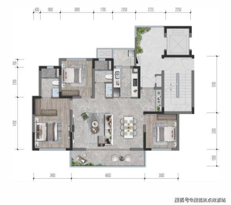 约6.6米宽厅开间,最大程度拉通空间视觉感