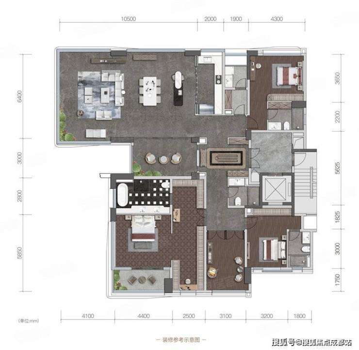 亮点:主卧套房面积超60㎡,含独立景观阳台及15㎡墅级衣帽间,双入户动线设计。