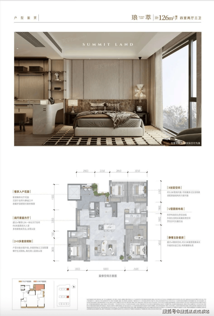 龙湖锦江峯萃主力户型为建面约 126㎡、140㎡四房产品,整体面向改善家庭,没有小户型混杂,圈层更加纯粹。