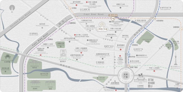 项目坐落于金牛区与青羊区交汇处的通锦路片区(属金牛区行政范围),北接备受关注的红盘通锦坊,南邻青羊区体育中心,坐拥真正的一环核心区位。