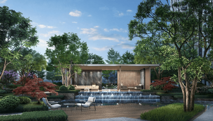 礼序归家场景—以一轴(森居景观轴)、五境(迎宾树阵; 浮岛会客 ;舒享花园;森林王国;活力球场)打造森居景观轴线,尊享轻奢归家体验