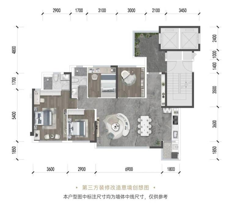 建面约120㎡高配旗舰四房:则以120㎡建面,实现上一代143㎡的空间格局及居住感受。