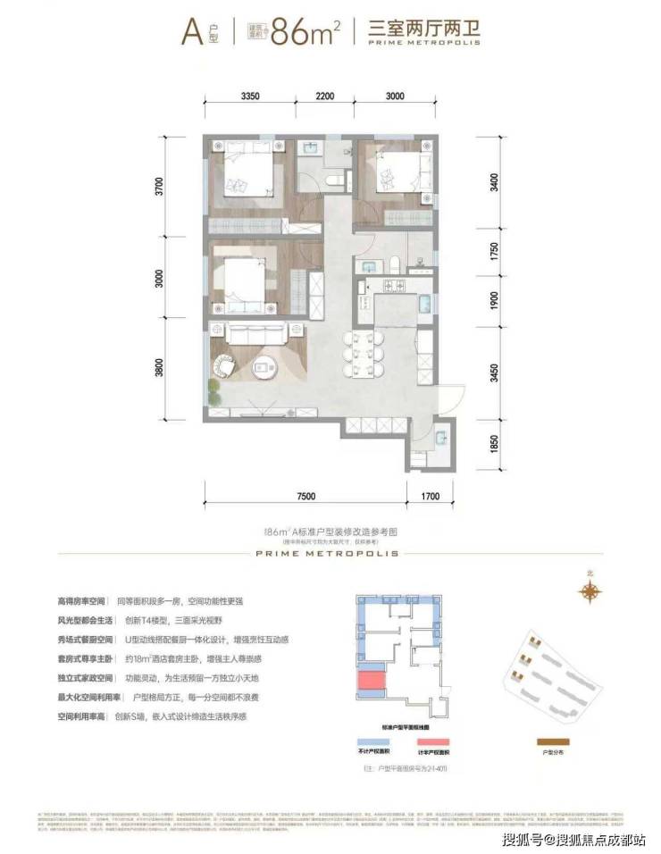 86平,2T4户,赠送率30%左右