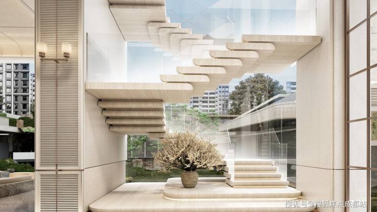 悬浮艺术梯:通过四部艺术楼梯,将社群精神场景转换的艺术装置,从热闹的欢愉,到静谧的私享,移步异景,层层递进。