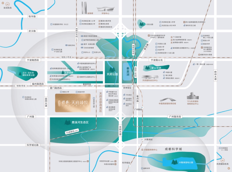 保利天府瑧悦,属于天西板块,而天西板块则属于天府新区最核心的区域——天府中央商务区
