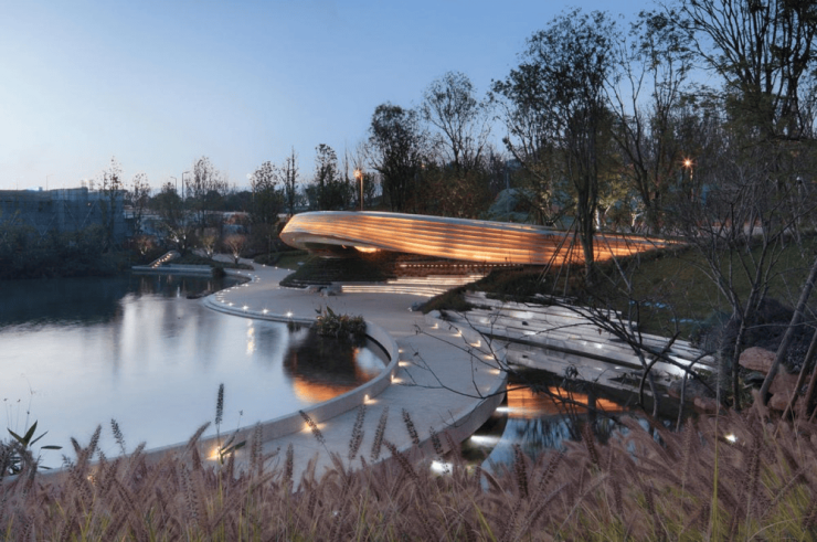 项目园林打造的整体设计理念为“蜀都锦绣”,通过人文、功能及美学的结合,让项目吸收引力与存续力并存,同时,项目还专门聘请了台湾的风水大师在项目规划阶段就对园林打造进行把脉,结合项目的产品打造特性,以项目自身建筑基地形成的曲线与地块整体框线组成阴阳两仪生四象的基础,打造出了由活力区和静怡区组合而成的景观园林。