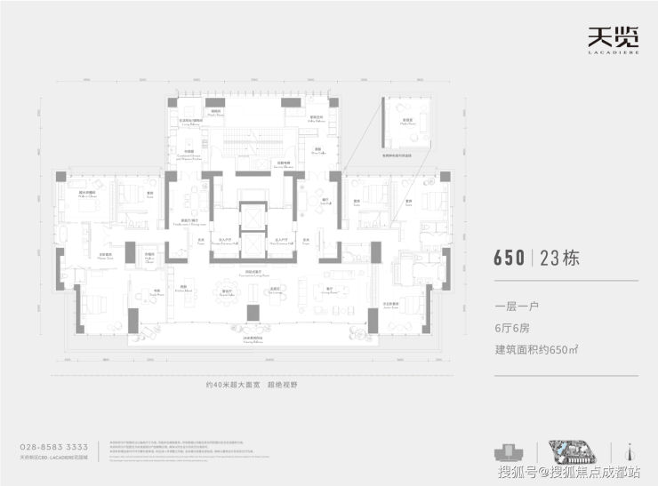 LACADIERE天览仅规划256户,营造出纯粹高端圈层。这里户户拥有超大面积,户户享有无敌视野。当其他楼盘还在追赶市场标准时,LACADIERE天览已然在定义全新标准。在成都房地产市场中,它是极为罕见的户户超300平的超级豪宅。每一层都有着巨幕般的视野,重新构建了顶豪生活场景。其中,有650㎡一层一户的奢阔户型,尽显尊贵。