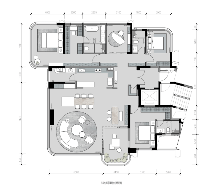 作为项目旗舰户型,253㎡重点实现私人领域与公共空间的彻底分离,满足高端客群对专属空间的需求。