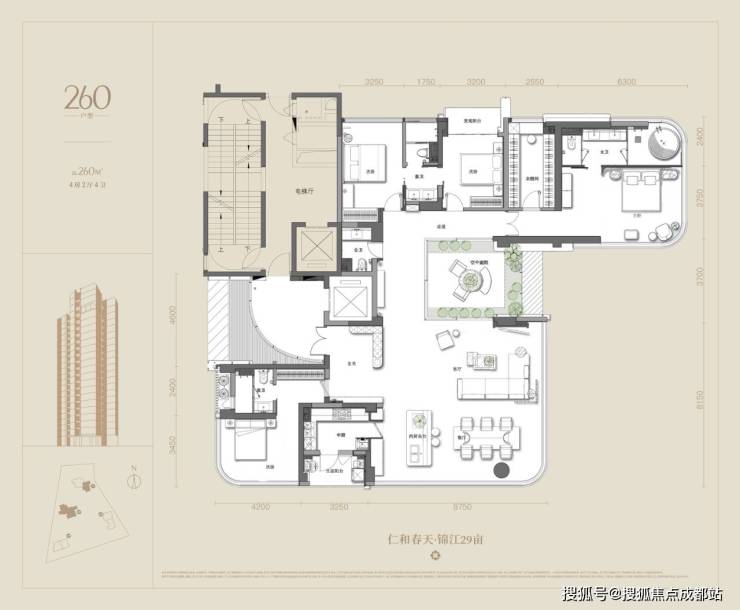 主力户型:200-260㎡奢阔平层