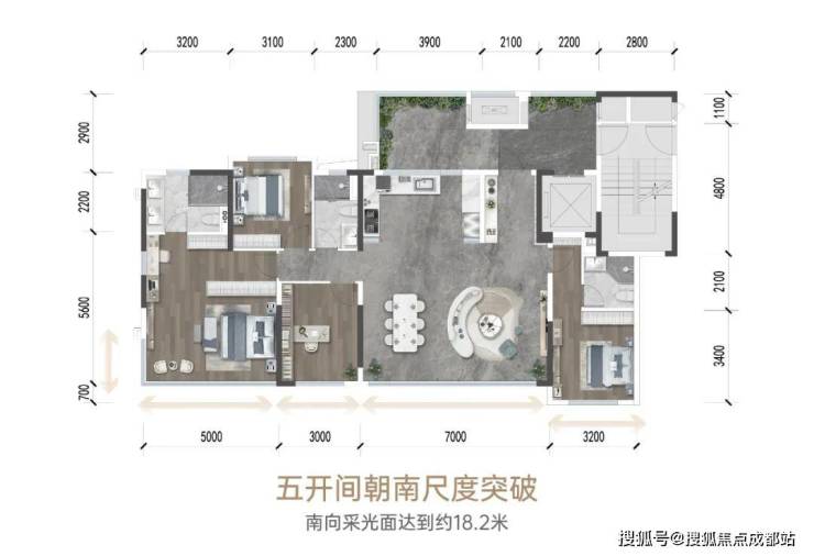约20㎡入户光厅(公区),独立玄关入户和花园入户双入户系统,新创花园早餐厅。约75㎡家庭生活广场,开间约7米大横厅连接LDKG空间。双套房设计,主人房有休息空间、独立衣帽间、采光美妆台、双台面盥洗系统、独立卫浴,L 型270°落地窗采光,约5米南向采光。