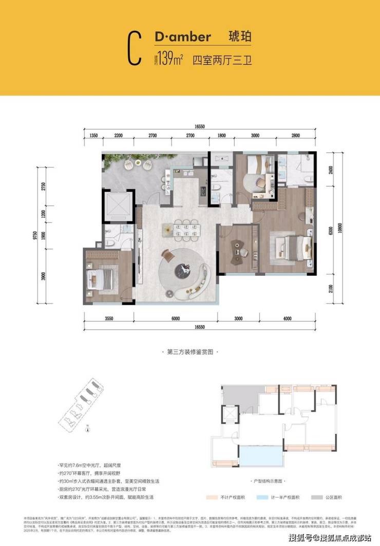 厨房270°环幕采光,15㎡巨型光厅入户,四叶草布局动静分区合理,得房率超104%。