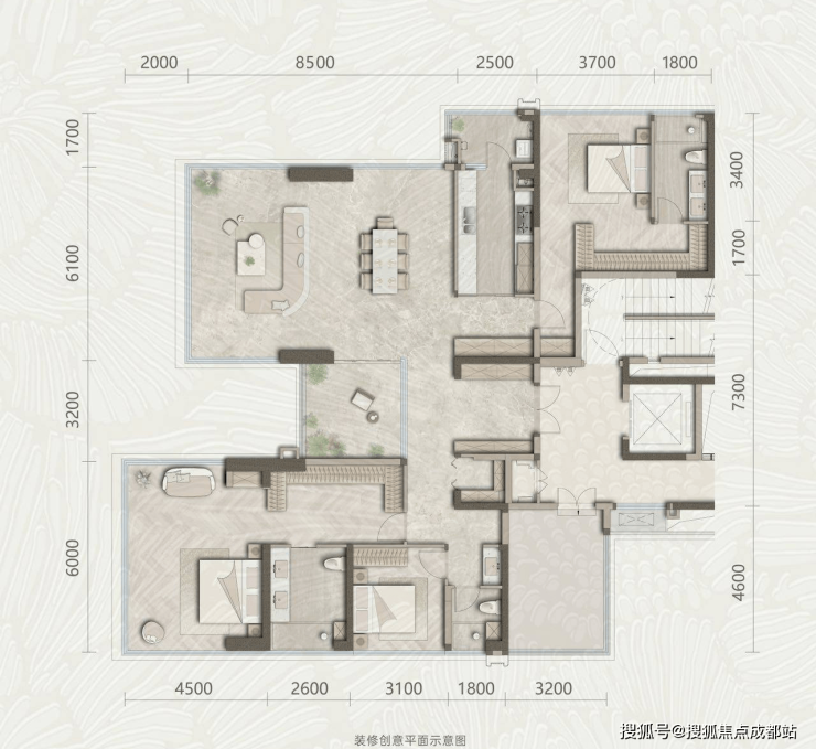 4室2厅3卫设计,约50㎡无界IMAX景观舱客餐厅,近20米270°观景面,可灵活改造为书房、影音室等多功能空间。双套房设计,主卧开间达6米,适配高净值人群的品质生活需求。